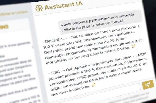 En quelques clics, parcourez la liste complète des prêteurs accrédités, leurs différents critères d’admissibilité et leurs exceptions. Comparez les options côtes-à-côtes et choisissez l’option optimale pour vos clients.